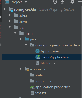 UrlResource URL을 기준으로 리소스를 읽어들임 지원하는 프로토콜 http, https, ftp, file, jar ClassPathResource 클래스패스를 기준으로 리소스를 읽어드림. classapth: FileSystemResource 파일시스템을 기준으로 리소스를 읽어드림. ServletContextResource 웹 어플리케이션 루트에서 상대 경로로 리소스를 찾는다. @Component public class AppRunner implements ApplicationRunner { @Autowired ResourceLoader resoureLoader; @Override public void run(ApplicationArguments args) throws Exception { // ClassPathResource("") = resourceLoader.getResource("classpath:") var cpr = new ClassPathResource("text.txt"); // 존재 여부 System.out.println(cpr.exists()); // classsPath System.out.println(cpr.getDescription()); // txt 파일의 내용 System.out.println(Files.readString(Path.of(cpr.getURI()))); // resourceLoader Resource resource = resoureLoader.getResource("classpath:text.txt"); System.out.println(resource.exists()); System.out.println(resource.getDescription()); System.out.println(Files.readString(Path.of(resource.getURI()))); // FileSystemResource("") = resourceLoader.getResource("file:") var fsr = new FileSystemResource("C:/dev/springResAbs/src/main/java/com/springresourceabs/demo/filetext.txt"); System.out.println(fsr.exists()); System.out.println(fsr.getDescription()); System.out.println(Files.readString(Path.of(fsr.getURI()))); // resourceLoader Resource resource2= resoureLoader.getResource("file:/C:/dev/springResAbs/src/main/java/com/springresourceabs/demo/filetext.txt"); System.out.println(resource2.exists()); System.out.println(resource2.getDescription()); System.out.println(Files.readString(Path.of(resource2.getURI()))); } }