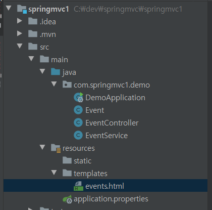 @Getter @Setter @Builder // Builder 패턴을 적용할 때 사용하는 어노테이션 // builder 간련 메서드를 따로 작성하지 않아도 됨. @NoArgsConstructor @AllArgsConstructor public class Event { private String name; private int limitOfEnrollment; private LocalDateTime startDateTime; private LocalDateTime endDateTime; } @Controller public class EventController { @Autowired EventService eventService; // @GetMapping (Spring 4.3버전부터 추가) @RequestMapping(value="/events", method = RequestMethod.GET) public String Events(Model model) { model.addAttribute("events",eventService.getEvents()); return "events"; } } @Service public class EventService { public List<Event> getEvents() { // builder 패턴 적용 Event event1 = Event.builder() .name("스프링 웹 MVC 스터디") .limitOfEnrollment(5) .startDateTime(LocalDateTime.of(2019,1,10,10,0)) .endDateTime(LocalDateTime.of(2019,1,10,12,0)) .build(); Event event2 = Event.builder() .name("스프링 웹 MVC 스터디 2차") .limitOfEnrollment(5) .startDateTime(LocalDateTime.of(2019,1,17,10,0)) .endDateTime(LocalDateTime.of(2019,1,17,12,0)) .build(); return List.of(event1, event2); }; }HTML -event.html