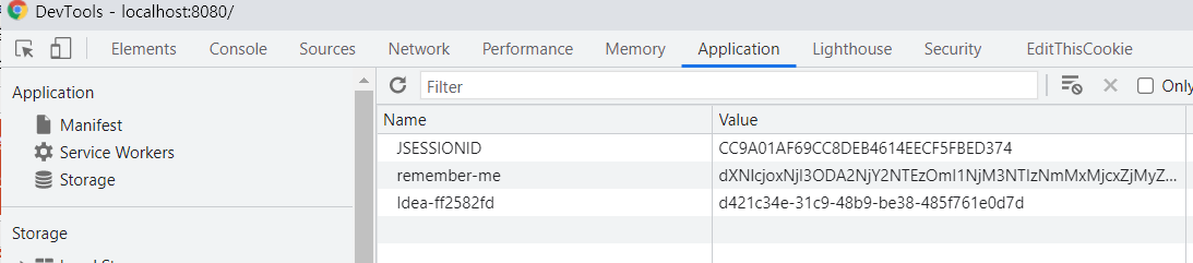 로그인 후 쿠키를 보면 아래와 같이 JSESSIONID 외에 remember-me가 생긴 것을 볼 수 있다.