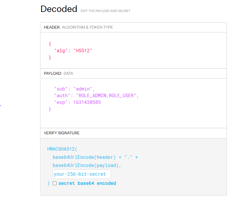 JWT란?SPRING/스프링 시큐리티 -JWT 2021. 9. 11. 18:38JWT의 정의JWT (JSON Web Token)는 개방형 표준 (RFC 7519)으로 당사자간에 정보를 JSON 객체로 안전하게 전송하기 위한 간결하고 독립적인 방법을 말합니다. 이 정보는 디지털 서명되어 있으므로 확인하고 신뢰할 수 있습니다. JWT는 비밀 (HMAC 알고리즘 사용) 또는 RSA 또는 ECDSA를 사용하는 공개 / 개인 키 쌍을 사용하여 서명 할 수 있습니다. JWT를 암호화하여 당사자 간의 보안을 제공 할 수도 있지만 서명 된 토큰에 중점을 둡니다. 서명 된 토큰은 그 안에 포함 된 클레임의 무결성을 확인할 수있는 반면 암호화 된 토큰은 해당 클레임을 다른 당사자로부터 숨깁니다. 공개 / 개인 키 쌍을 사용하여 토큰에 서명하면 서명은 개인 키를 보유한 당사자만 서명한 당사자임을 인증합니다. JSON을 사용하는 이유 1. XML보다 Compact하므로 인코딩 용량도 작다. 2. XML에 비해 디지털 서명하는 것이 어렵다. 3. JSON 파서는 객체에 직접 매핑이 됨으로 보다 프로그래밍에 용이하다. JWT를 사용하는 상황 - 회원 인증 JWT 장점 - 토큰을 사용하면 세션을 통한 방식과 달리 서버측 부하를 낮출 수 있고, 능률적인 접근 권한 관리가 가능함. - 분산 / 클라우드 기반 환경에 더 잘 적응 - 별도의 인증 저장소가 필요 없음. (인증 서버에 DB가 필요하지 않음.) JWT 단점 - 저장할 필드 수에 따라서 토큰이 커질 수 있다. - 토큰이 모든 요청에 전송될 시에 데이터 트래픽 크기에 악영향을 및니다. JWT 형식 Header : 헤더 - 알고리즘 형식 (RSA / SHA256 등) Payload : 정보 - 서버와 클라이언트가 주고받는 시스템에서 실제로 사용될 정보에 대한 내용을 담고 있음. Signature : 서명 - 헤더의 인코딩 값과 정보의 인코딩 갑을 합친 후 비밀키로 해쉬를 하여 생성함.  'SPRING > 스프링 시큐리티 -JWT' 카테고리의 다른 글JWT 실습 프로젝트 - 4 (회원가입, 권한검증) (0) 2021.09.18 JWT 실습 프로젝트 - 3 (로그인) (0) 2021.09.17 JWT 실습 프로젝트 - 2 (Security 기본 설정, JWT 및 Security 설정) (0) 2021.09.17 JWT 실습 프로젝트 - 1 (프로젝트 생성 및 설정) (0) 2021.09.11