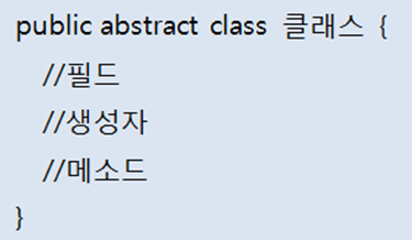 - New 연산자로 객체 생성하지 못하고, 상속 통해 자식 클래스만 생성 가능