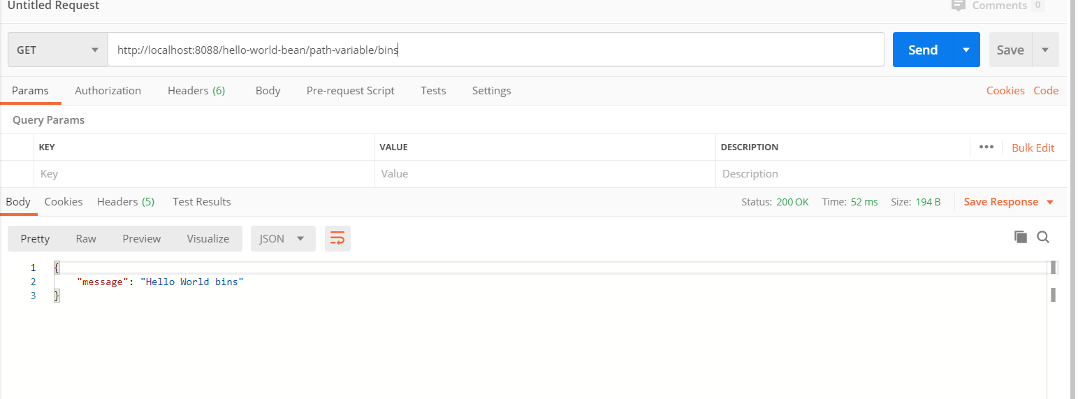 아래와 같이 PostMan을 이용하여 Rest Controller에 url을 호출하면 아래와 같이 response가 나온다.