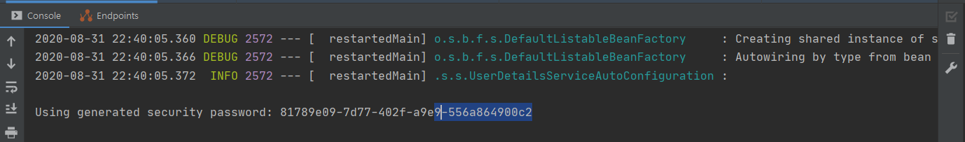 스프링 톰캣 서버를 시작할 때 발급되는 위 password를 Authorization에 할당해야 한다.