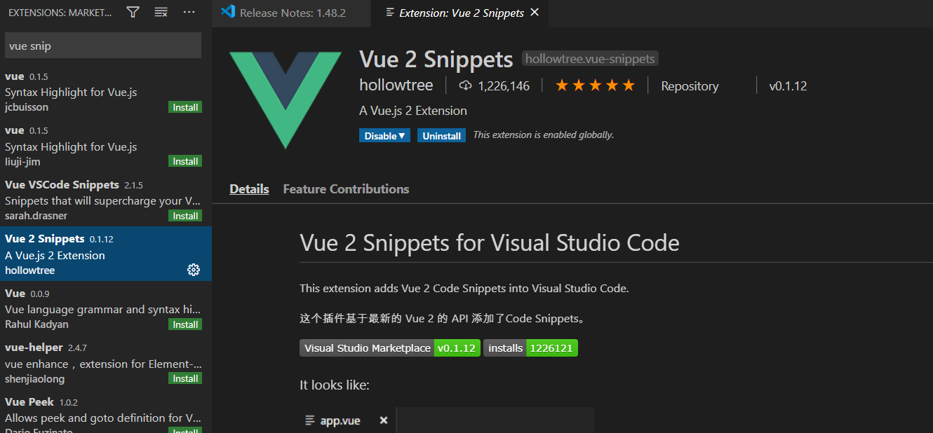 .vue 파일에 대한 코드를 만들어주는 기능을 비롯하여 디버깅, 자동 완성 등 여러가지를 지원한다.