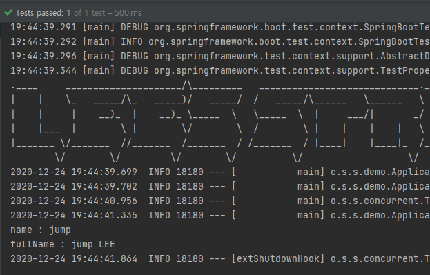 ApplicationTest.java 위와같이 Test 코드를 작성하고 실행시켜봅니다.
