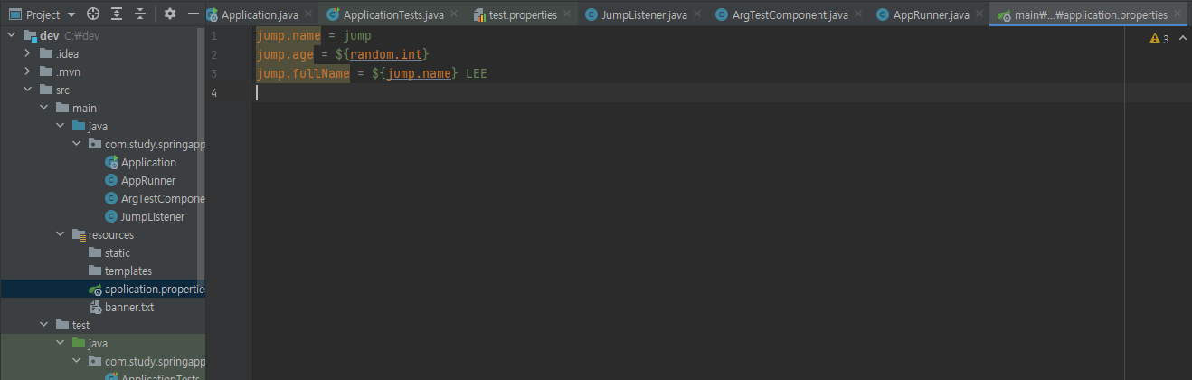 Application.properties ${random.int} 와 같이 랜덤값 지정도 가능하다.
