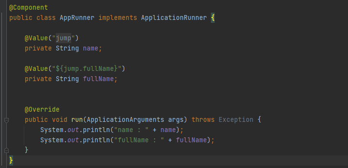 위와 같이 @Value 어노테이션을 사용하여 값을 출력할 수 있다.