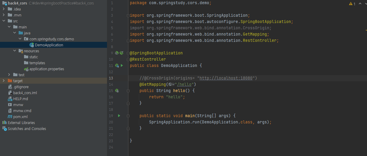 @CrossOrigin 주석을 풀고 실행시에는 아래 스크린샷과 같이 성공을 한다.