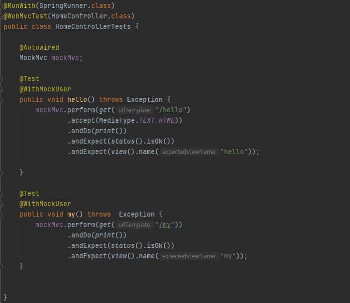 [스프링부트 개념과 활용] 스프링 시큐리티 (기본)SPRING/스프링부트 개념과 활용 2021. 1. 19. 23:40스프링 시큐리티 기본 테스트 아래와 같이 프로젝트를 생성해준다. (타임리프 적용)    시큐리티를 적용하지 않을 시 위와 같이 평범한 화면이 나온다. 하지만 스프링 시큐리티 의존성을 적용할 시에는 아래와 같이 로그인화면이 나온다. <dependency> <groupId>org.springframework.boot</groupId> <artifactId>spring-boot-starter-security</artifactId> </dependency> 계정 : user 비밀번호는 아래 console 창에 나오는 password를 입력하면 index.html 페이지로 이동할 수 있다.  위와 같은 스프링 시큐리티 기본설정은 실무에서는 사용하지 않는다. UserDetailsService를 별도로 생성하여 애플리케이션에 맞게 커스터마이징하여 사용한다. 테스트 스프링 시큐리티를 테스트하고 싶으면 아래와 같은 의존성을 추가한다. <dependency> <groupId>org.springframework.security</groupId> <artifactId>spring-security-test</artifactId> <version>${spring-security.version}</version> <scope>test</scope> </dependency> 테스트에 @WithMockUser를 붙이면 인증이 된 가짜 유저를 적용시켜 테스트를 할 수 있다. 'SPRING > 스프링부트 개념과 활용' 카테고리의 다른 글[스프링부트 개념과 활용] 스프링 RestTemplate / Webclient 사용 (0) 2021.01.22 [스프링부트 개념과 활용] 스프링 시큐리티 (활용) (0) 2021.01.20 [스프링부트 개념과 활용] REDIS (1) 2021.01.16 [스프링부트 개념과 활용] 데이터베이스 초기화 (0) 2021.01.16 [스프링부트 개념과 활용] JPA 연동 (0) 2021.01.11