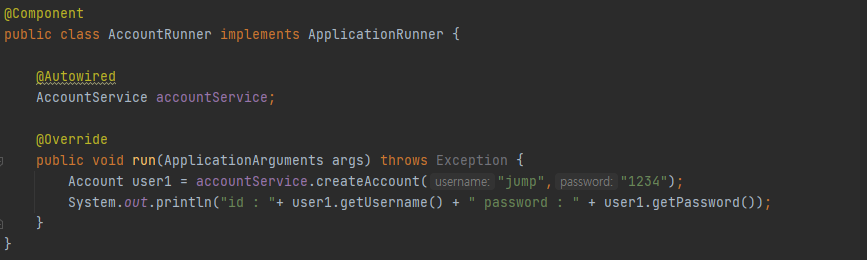 - 어플리케이션을 실행할 때마다 jump 계정을 생성한다.